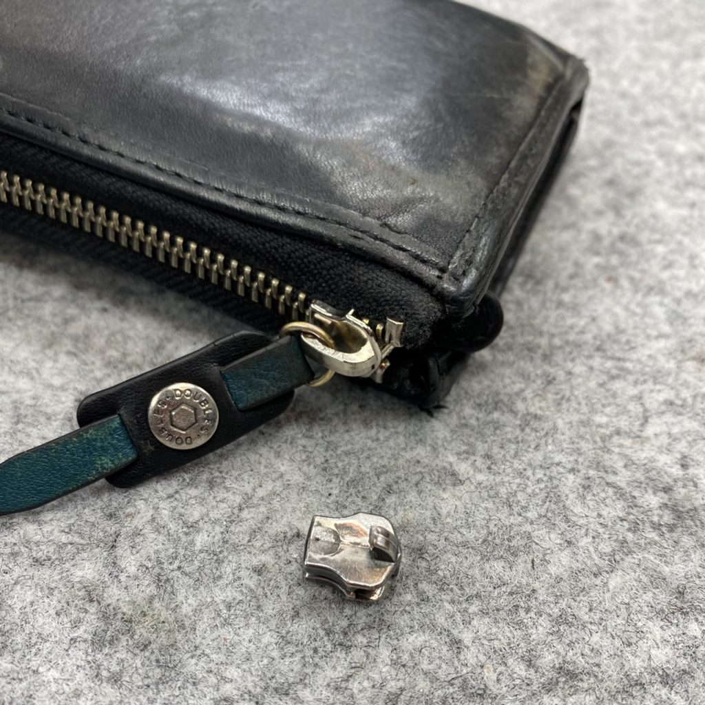 お財布のスライダ―が劣化で引手が外れていたため、スライダ―を交換しました。
