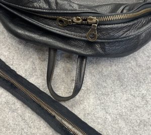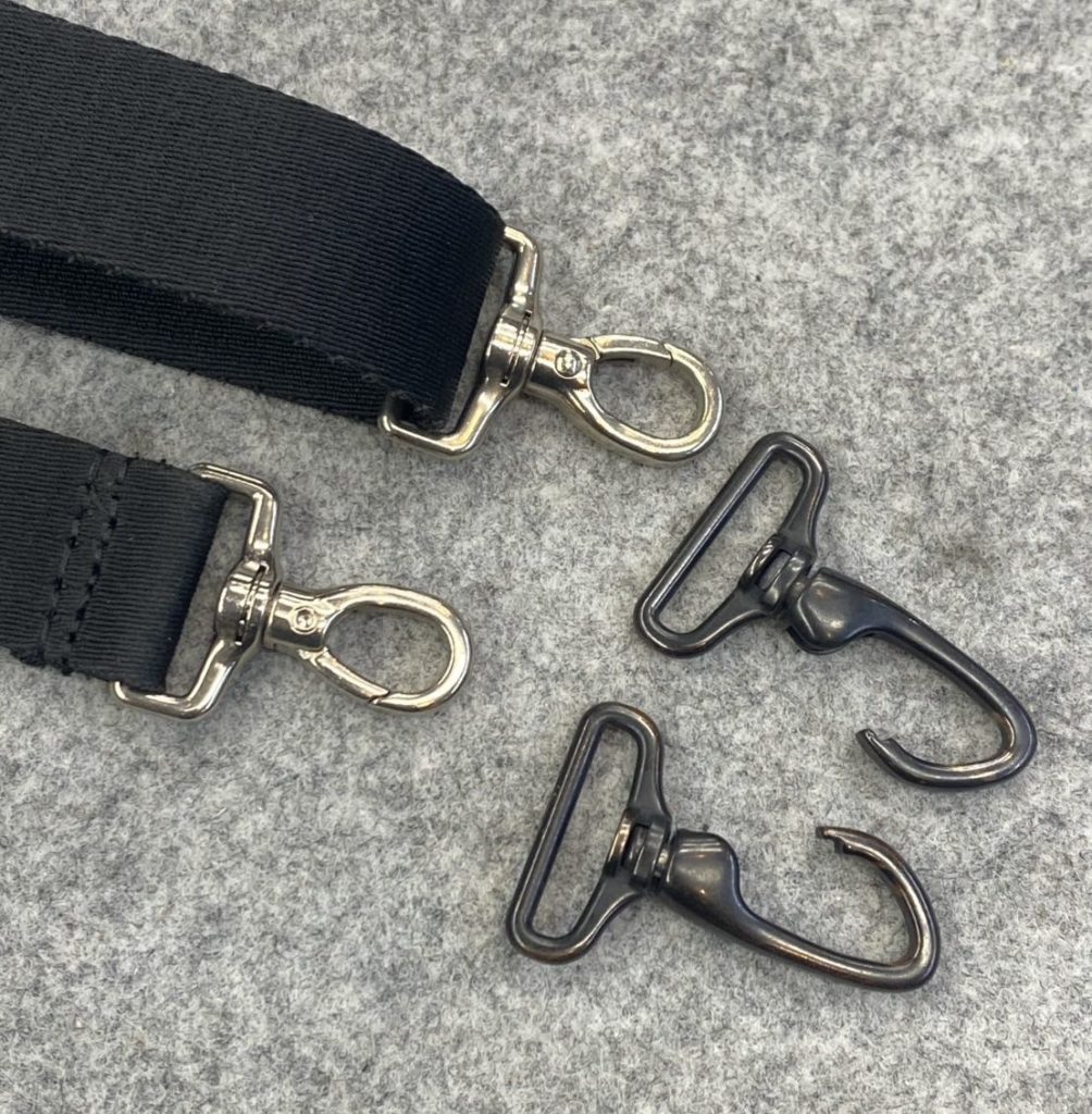 バッグ本体とショルダーをつなぐ金具部品「ナスカン」が経年劣化で割れていたため、新しいナスカンに交換しました。